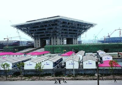 4月12日,上海世博會(huì)中國館“東方之冠”基本成型。圖為中國館“東方之冠”外觀。 張向陽攝