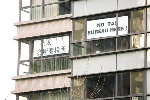 貼標語抗議“稅所入駐”