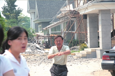 他說,物業(yè)不得已向昌平區(qū)規(guī)劃局和城管大隊進行舉報,幾年下來僅舉報材料堆起來有一米多高。城管和規(guī)劃局工作人員經(jīng)常來調(diào)查,但仍無法阻止業(yè)主的私搭亂建行為。物業(yè)有一次曾想調(diào)集保安進行強制停工,但行動前接到消息稱,正在改擴建的別墅主人是一名餐飲業(yè)老總,這人從公司糾集了100多名保安要“護園”,為避免發(fā)生沖突,物業(yè)只得取消行動。這名總經(jīng)理同時稱,施工前,業(yè)主交給物業(yè)的都是裝修圖,但一開建就變了味。