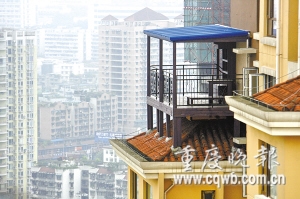 昨天中午,記者在該小區(qū)看到,“最牛吊腳樓”所在的5棟樓下拉著警戒線,幾個業(yè)主仰頭張望,說:“拆了我們就放心了!痹32樓該業(yè)主屋內(nèi),五六個工人正忙著鋸木頭柱子,藍色棚頂已拆除,雕花鐵藝欄桿和木頭桌椅也已移走。現(xiàn)場工人告訴記者,他們的拆除工作是從前天下午開始的。由于“吊腳樓”面積近20平方米,木頭柱子還用水泥焊住,“拆起來比修起來還麻煩!