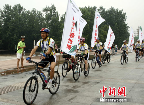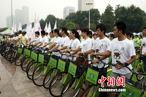 中新網武漢7月10日電 (艾啟平 胡志強 易慧)10日上午,“綠色長征、傳播低碳——百企組團千里騎行看世博”在武漢市漢口江灘啟動。