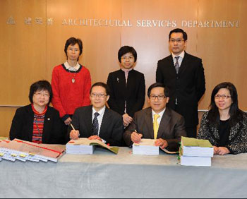 香港建筑署工程策劃總監袁家達代表特區政府與金門建筑有限公司總裁何安誠簽署合約。合約包括設計和建造香港館、內部裝修、展覽裝置、園境設計、保養維修及在上海世博結束后的拆卸工程。