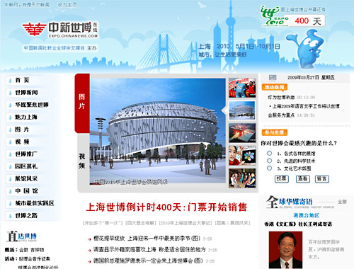 欣聞貴網將在世博會倒計時四百天之際(3月27日)開通“中新世博在線”,謹表示熱烈祝賀!