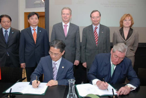 奧地利當(dāng)?shù)貢r(shí)間3月30日,上海市政協(xié)副主席、中國(guó)2010年上海世博會(huì)執(zhí)委會(huì)副主任周漢民出席了奧地利共和國(guó)簽署上海世博會(huì)參展合同的簽約儀式暨奧地利國(guó)家館設(shè)計(jì)方案揭曉儀式,與奧地利展區(qū)總代表安德羅什博士(Dr. Androsch)共同簽署了參展合同。奧地利成為第193個(gè)與上海世博會(huì)組織者簽署參展合同的參展方。