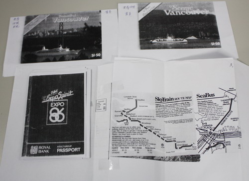 下面我分別談這兩件事的情況。當(dāng)我抵加拿大溫哥華,哥哥們 一定要我去參觀舉世矚目的1986年溫哥華世博會(EXPO),親友們很快為我購買了精致的入場券。因為每次去用車載我參觀,一參觀一整天(從上午10點到下午9點),我只去過兩次,去幾個國家地區(qū),每到一個地區(qū)、國家可蓋紀(jì)念章。這張入場券像一本護照,做得很精致,同時各個地區(qū)、國家有種種介紹的冊子。我要來不少冊子,后來在搬家中丟失了。這本“護照”留地方蓋當(dāng)日入場日期,并留了不少空白號蓋章用。我參觀了兩次(1986年5月26日及5月31日),我保存入場券上有蓋紀(jì)念章包括中國館、加拿大安大略省(法文地區(qū))、日本、馬來西亞、韓國、羅馬尼亞、加拿大、肯尼亞、澳大利亞、巴基斯坦等。我入場券號碼是0370014,首一頁是當(dāng)?shù)厥组L(籌備館負責(zé))歡迎詞,在第二頁上寫上自己的名字、地址及自己簽名,寫上三日護照(Three day passport)與皇家銀行(Royal Bank)合辦。并有一張1986年溫哥華EXPO導(dǎo)游圖,標(biāo)出80個地區(qū)、國家所在。我還有保存兩本介紹溫哥華風(fēng)景小冊子,每一本冊子包括14個風(fēng)景區(qū),每本定價1.5元。