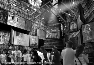 進(jìn)入家庭展區(qū)后,觀眾滿(mǎn)眼都將是這些家庭成員的影像,這些影像由投影機(jī)投射到許多鏡子上,再互相反射,呈現(xiàn)“無(wú)處不在”的感覺(jué)。在工作展區(qū),一個(gè)屏幕可以自動(dòng)旋轉(zhuǎn),用來(lái)表現(xiàn)六個(gè)家庭的不同工作情況。在交往展區(qū),則把六個(gè)家庭的社會(huì)交往情況投射到天幕上。展區(qū)屋頂上垂下一條條桿子,觀眾觸摸一條桿子,相應(yīng)一條某處的桿子就會(huì)發(fā)亮,顯示人們之間交往的感覺(jué)。在學(xué)習(xí)展區(qū),將模擬一個(gè)很大的書(shū)柜,展區(qū)空間會(huì)變色,顯示從早到晚的變化。在健康展區(qū),屏幕上將表現(xiàn)各個(gè)家庭怎樣從事醫(yī)療、如何維護(hù)健康等。展覽結(jié)尾處是六個(gè)家庭在屏幕上和大家揮手說(shuō)再見(jiàn)。