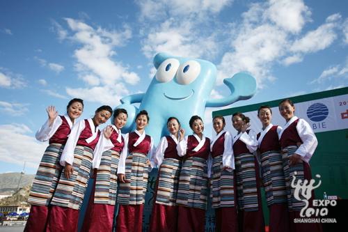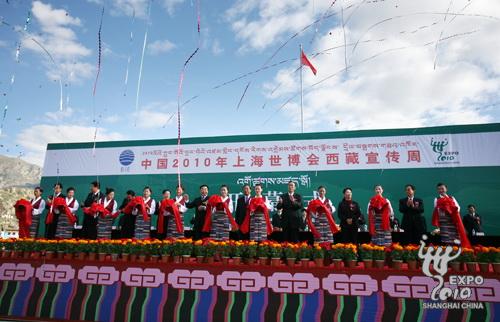 8月22日上午,金色陽光灑滿美麗的雪域高原,在日光城拉薩市中心,中國2010年上海世博會西藏宣傳周活動在布達拉宮廣場前啟動,2000多名西藏各界民眾歡聚在廣場前歡迎世博會吉祥物“海寶”落戶雪域高原。西藏自治區黨委書記張慶黎,西藏自治區黨委副書記、自治區主席向巴平措,中國貿促會會長、上海世博會組委會副主任委員萬季飛,上海市政協副主席、上海世博會執委會副主任周漢民和西藏自治區領導郝鵬、吳英杰、崔玉英、秦宜智、宮蒲光等出席了今天的宣傳周啟動儀式。