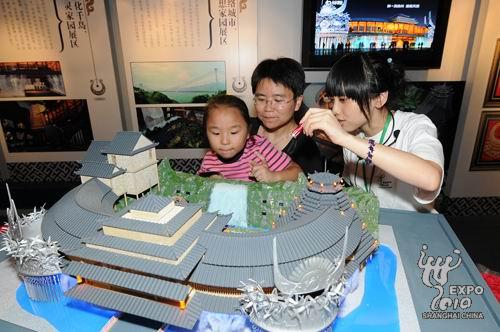 一位老人帶著他的小孫女在貴州館模型前仔細觀賞,“孩子你看,這個是黃果樹瀑布,這個是苗族女孩子在節日里穿的衣服,這個是……”老人表示,這是一個很好的機會,帶孩子來了解一下自己年輕時工作的地方,也讓她能夠多增長一些世博知識。更重要的是,貴州可以說是他的第二故鄉,前來參觀也是為了對貴州參展表示支持。