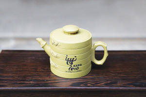 許四海受邀設計的十八款世博壺,緊扣主題,匠心獨運,款款不同。其中一把表現“上海小吃”主題的紫砂壺,借用了小籠包籠屜的造型,名為“蒸蒸日上壺”,妙趣橫生。“東方之冠壺”將壺嘴、壺把、壺蓋和壺身融為一個整體,儼然一座縮微的世博中國館。“上海世博字形對壺”是一對方壺,壺身4面分別為美術字的“上”“海”“世”“博”4字,形式感極強。許四海說:“上海世博壺要展現我們這個時代的活力,不能泥古不化,每一把壺要給人驚喜,兼具審美和實用價值。”(記者 林明杰)