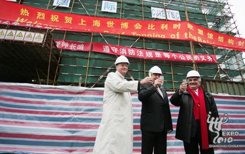 自破土動工之日起僅三個月時間,位于上海世博園區(qū)C片區(qū)的比利時—歐盟館便宣告結(jié)構(gòu)封頂。昨天下午,比利時—歐盟館舉行結(jié)構(gòu)封頂儀式,歐盟駐華大使、上海世博會歐盟館總代表賽日安博和上海世博會比利時展館總代表戴明哲與來自歐盟和比利時的官員,一起見證了展館建設(shè)進(jìn)程中這一具有里程碑意義的時刻,安博也首次介紹了歐盟展區(qū)的展示方案。