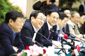 俞正聲認真傾聽,時而低頭記錄,時而陷入沉思。當聽到不清楚或者有所思考的地方,他當場與委員展開討論,一答一問之間,委員暢所欲言,氣氛活潑生動。
