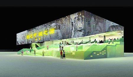 河南館的建筑外形由一個“中”字變形而來,分上中下三層空間,其中中部構成一個全開放的坡面空間,為展館主體,上層主要是穹頂裝置,下層則設計為一個藏寶室。正面是“國之中、城之源”及“河南”幾個大字;側面,盧舍那大佛微笑了千年的龍門石窟,觀之令人震撼。展館主體空間,由數(shù)千個文物復制品、人物模型組成了一個實體的、起伏綿延的游行隊伍,仿佛是一場流暢的盛大演出。據(jù)了解,上海世博會河南館正在加緊裝修布展,各種展品正陸續(xù)運往上海,參展文物和大游行人偶4月10日~15日安放到位,4月15日~20日試運行,4月20日后將隨中國館試運營。昨天,河南世博辦還向記者解讀了河南館的五大亮點。