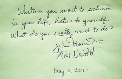身為上海世博會青年周“時間芯片”活動終審評委的奈斯比特夫婦(見上圖),將以怎樣的標準評判青年關于未來的作品?他們對未來城市生活的趨勢有何預測?5月3日下午,本報記者獨家專訪了奈斯比特先生及其夫人多麗絲·奈斯比特。