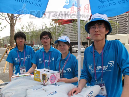 記者發現,在中國館面向世博軸的出口處有個冷飲銷售點,那里的四名營業員卻很清閑。
