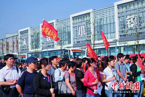中新網(wǎng)張家港5月25日電(李克祥)“放眼看世界,享受新生活。”今天清晨,以此為主題的“萬人游世博”在張家港永聯(lián)村正式啟動(dòng),由350名村民職工代表組成的首發(fā)團(tuán),登上開往上海世博園區(qū)的“幸福”大巴,實(shí)現(xiàn)不出國門的“出國”開眼界之旅。