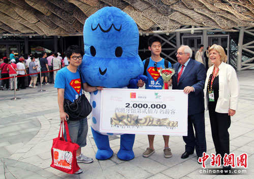中新網上海6月22日電(記者 殷春永)上海世博會西班牙館21日迎來第200萬名游客,除外觀酷似“大籃子”的造型給人們難忘的印象外,該館的接待人員能說西班牙語、中文和英語,亦頗受游客贊賞。