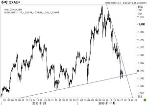 因投資者擔憂愛爾蘭財政問題惡化并可能想歐元區蔓延,市場避險情緒繼續升溫,推升美元繼續走強,美指突破79創下9月28日以來的新高。中國緊縮傳聞愈演愈烈,大宗商品價格紛紛跳水,原油價格近期跌幅逾7%。周二金價一度跌破1330美元,跌幅超過2%。
