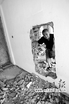 “目前24棟已經(jīng)完全被拆除,25、26、27棟主體結(jié)構(gòu)被破壞,29棟拆成了‘神仙洞’,31棟拆得漏雨,被稱為‘水簾洞’,幾十戶只好出去租房。在2009年11月還有50余戶居住、30多戶業(yè)主未簽約的情況下就開(kāi)始拆遷,破壞小區(qū)達(dá)74天之久,已經(jīng)嚴(yán)重違法。”顧先生表示。
