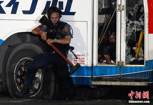 特警把旅游巴士團團包圍,警察曾把后擋風玻璃打碎,并試圖強攻旅游巴士。至晚上接近9時,槍手被擊斃后,巴士內的幸存者才陸續被救出來。