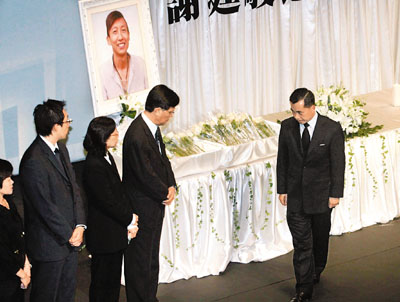 康泰旅行社昨晚在葵青劇院為謝廷駿舉辦“我們永遠(yuǎn)懷念您—謝廷駿追思會(huì)”。追思會(huì)分為兩部分,先接待800名謝家家屬、好友、旅行社員工;之后開放予1000名冒雨出席的公眾人士,香港署理行政長(zhǎng)官黃仁龍、勞工及福利局局長(zhǎng)張建宗等多名官員出席向謝廷駿致意。