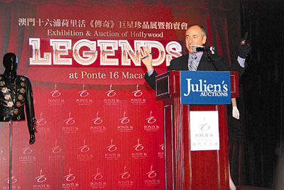 中新網10月12日電 據香港文匯報報道,澳門十六浦荷里活《傳奇》巨星拍賣會日前舉行。這是朱利安拍賣行于亞洲舉行的首個拍賣會,吸引了來自世界各地的競投家及收藏家參與,歷時11小時的拍賣會,成功拍賣共435件珍品,總成交價高達320萬美元,其中邁克爾·杰克遜的手套更是賣出21萬美元的高價。