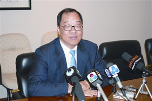 譚伯源強(qiáng)調(diào)澳門金融體系運(yùn)作正常。(圖片來(lái)源:澳門日?qǐng)?bào))
