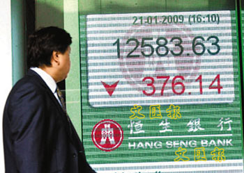 中新網(wǎng)1月22日電 據(jù)香港《文匯報(bào)》報(bào)道,21日港股承接美股大跌332.13點(diǎn)的勢頭,在匯控被力沽及國壽受盈警拖累股價(jià)下挫7.5%的情況下,恒生指數(shù)收市下跌376.14點(diǎn)至12,583.63點(diǎn),其跌幅為2.9%,不算太大。