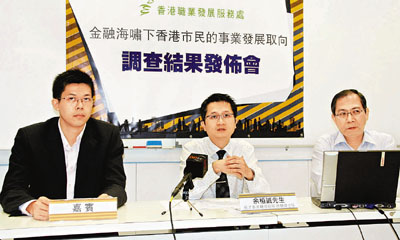 香港職業發展服務處總輔導主任余柏誠(中)建議求職人士,降低薪酬要求。(圖片來源:文匯報)