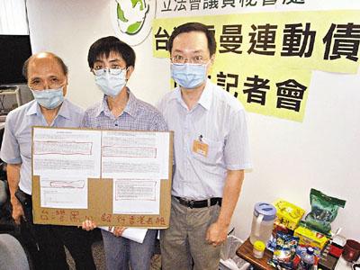 3名臺(tái)灣雷曼投資者聯(lián)同代表律師日前抵達(dá)香港,希望尋求證監(jiān)會(huì)協(xié)助。代表律師邱彰指出,產(chǎn)品合約條文列明買賣受香港法律約束,臺(tái)灣金融管理部門因此將責(zé)任推到港府身上,拒絕處理苦主的投訴。