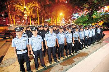 有關(guān)單位部署掃場(chǎng)行動(dòng),慎防有勢(shì)力人士包庇該等娛樂(lè)場(chǎng)所,為防消息走漏,行動(dòng)前特抽調(diào)龍崗區(qū)公安逾300人,包括公安、武警、特警和警犬隊(duì),4日凌晨2時(shí)集合后,大隊(duì)人馬越區(qū)掩至羅湖及福田區(qū)多家目標(biāo)場(chǎng)所,其中一重點(diǎn)搜查處為福民路皇崗村口的“皇后大道的士高”,公安人員封鎖各出入口,向在場(chǎng)顧客及職員等逐一搜查。