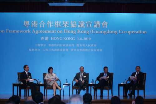 曾蔭權(quán)在致辭時(shí)說,粵港合作三十多年前已經(jīng)開展,未來三十年將在堅(jiān)實(shí)的合作基礎(chǔ)上,進(jìn)行更清晰的發(fā)展定位和分工。他說,《框架協(xié)議》把《珠江三角洲地區(qū)改革發(fā)展規(guī)劃綱要》的宏觀政策,化為有利粵港發(fā)展的具體措施,為深化粵港合作提供了有用的平臺(tái),有助雙方日后爭(zhēng)取更多“先行先試”的措施。