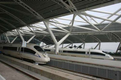 而為進(jìn)一步加快整體工程進(jìn)度,鐵道部要求將原計劃從廣州向深圳單向鋪軌,改為從廣州、深圳同時向中間獅子洋隧道雙向鋪軌,其中連接廣州南站的重點(diǎn)控制性工程番禺區(qū)屏山涌段日前全面完成軌道板鋪設(shè),標(biāo)志著該項(xiàng)目廣東段正式進(jìn)入“無砟軌道”全線施工階段,比原計劃工期提前了6個月,將確保實(shí)現(xiàn)今年底前建成通車的目標(biāo)。