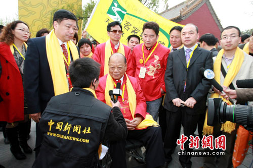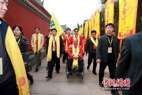 中新網鄭州4月16日電 (記者 趙敏 何曉聰)16日,庚寅年黃帝故里拜祖大典在河南新鄭黃帝故里舉行,香港客屬代表曾憲梓率團抵達祖根圣地,祭奠人文始祖軒轅黃帝。