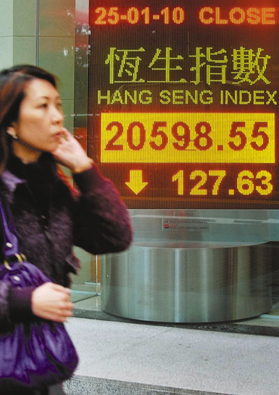 中新網1月26日電 據香港《文匯報》報道,美聯儲局主席伯南克連任有阻力,以及美總統奧巴馬提出嚴厲監管大型銀行規模的新方案,加上市場擔心內銀股再有“抽水潮”,拖累亞太股市25日普遍下跌,港股連跌4天,收報20598點,跌127點,成交大縮至638.6億元。港股連續4天下跌,累計跌1079點。