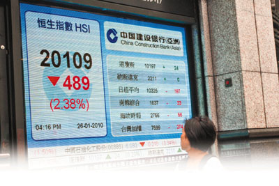 中新網1月27日電 據香港《文匯報》報道,期指結算臨近,港股沽壓持續,恒指連跌5個交易日,累積跌1568點,險守20000點關口。26日適逢多個壞消息出籠,亞太區股市近全線下挫,港股由開市跌至收市,全無反撲之力,恒指最多跌逾550點,收跌489點或2.4%,跌至20109點,成交777億元。