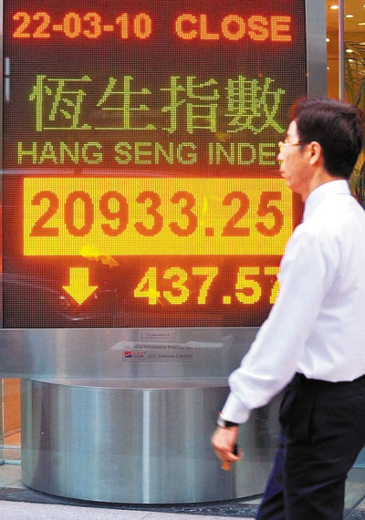 中新網3月23日電 據香港《文匯報》報道,希臘債務危機的負面消息仍籠罩全球股市,加上印度突然加息0.25厘,投資者憂慮其它新興市場特別是中國可能也會跟隨加息,令亞太區股市報跌,港股更是區內表現最差的股市。