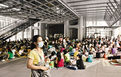 12日中環皇后像廣場跟往常的周日一樣坐滿外傭,不過菲律賓傭工組織主席Rima Cunanan指出,近期不少會員反映,雇主禁止她們外出聚會,批評做法不合理。有外傭中介公司表示,倘若雇主不放心,可安排外傭抵港后,先到中介公司的宿舍隔離數天。