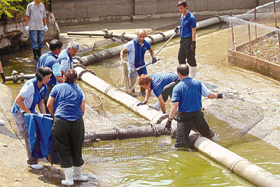 海洋公園8日行先派出專家和工作人員,用圍網(wǎng)和魚網(wǎng)到青衣公園的人工湖,捕捉3條福鱷,及一些不適宜在池內(nèi)飼養(yǎng)的魚,包括虎頭鯰魚等。