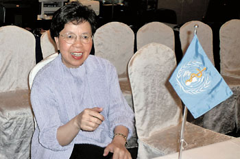 中新網(wǎng)9月23日電 在香港出席世衛(wèi)西太平洋區(qū)域會(huì)議的世衛(wèi)總干事陳馮富珍接受香港《明報(bào)》訪(fǎng)問(wèn)時(shí)表示,在世衛(wèi)工作了33個(gè)月,任期剛好過(guò)了一半,工作雖然辛苦但很投入。記者笑問(wèn)她會(huì)不會(huì)連任,她說(shuō)按世衛(wèi)章程可以連任兩屆,甚至有成員國(guó)打趣說(shuō):“世衛(wèi)可以改例,讓她當(dāng)夠三屆總干事。”