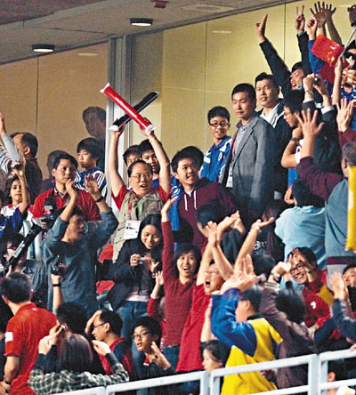 而當香港隊在互射12碼擊敗日本摘金后,曾蔭權更興奮得跳了起來,與特首辦主任譚志源擁抱慶祝。其瘋狂投入肉緊的程度,遠勝一般球迷。