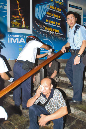 警方接報大為緊張,大批警員及在區內監視的探員紛趕至,了解后立即登上大廈搜查。另方面,救護員到場,替被腐蝕液濺傷的街坊清洗,其中3名45至60歲男子需送院診治。