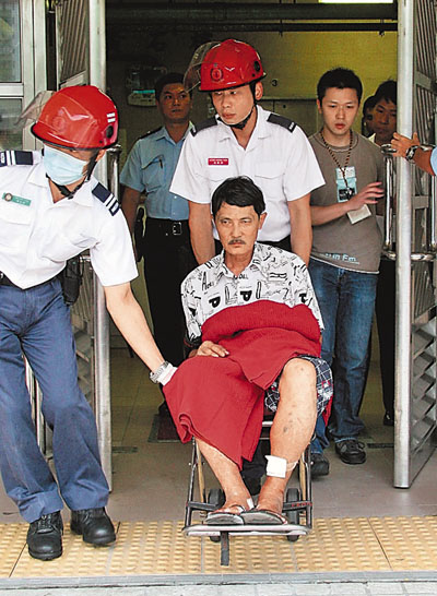 昨日下午3時50分左右,有人又再登門舊事重提,葉準妻應門,稱丈夫不在家,企圖打發他離開,未料對方突告情緒激動,在走廊跨過約4呎高欄河,揚言跳樓,街坊見狀報警。警員接報迅速到場,并趁其不備,一擁而上將他制服,混亂間其腳部擦傷,需送院敷治。