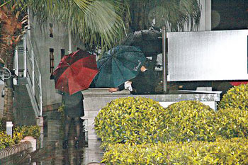 由于15日晚香港突下起傾盤大雨,他們一下車便有7、8個保鏢趕上前,撐起傘陣護送他們入內,這頓私人晚餐連公關也不知情,如今被傳媒識破,不過依然沒影響他們的雅興。
