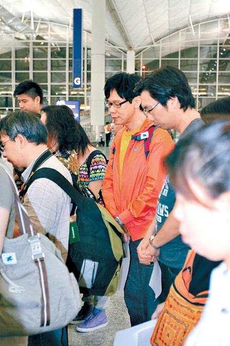 記者見陳志云似乎稍為放松,便追問他有關復工的最新消息,可是他仍然非常戒備,始終不肯透露半點風聲。他謂:“Sorry,我不答又似無禮貌,但我真的不方便做訪問,你都知我平時有問必答。”說罷,陳志云便前往會合數十位教友,并獲教友熱情接待,大伙兒在上機前一起進行禱告儀式。
