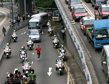 廣東警方人士說,圣火在港澳傳送時(shí)正值“五一”小黃金周,預(yù)計(jì)大量內(nèi)地客蜂擁赴港,口岸的安檢風(fēng)險(xiǎn)與壓力將劇增。為應(yīng)對(duì)出入境高峰人潮,屆時(shí)邊防、海關(guān)、檢驗(yàn)檢疫等口岸部門人員均將全部取消休假,并將增派一批警力進(jìn)駐深港、珠澳口岸,確保萬無一失。