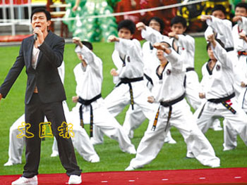 中新網(wǎng)5月5日電 據(jù)香港文匯報報道,香港各界青少年迎奧運系列活動委員會4日在香港大球場舉行“心系奧運.中華青年大聯(lián)歡”,劉德華、金培達、李克勤、方力申等香港藝人及內(nèi)地歌手周筆暢、王宏偉參與演出,陣容相當(dāng)龐大。
