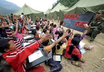 中新網5月28日電 據香港大公報報道,在四川大地震中倒下的一間又一間學校,奪走了孩子的生命與未來,幸存的學生失去了同學和老師、失去了課室與書本。未來,于死者太遙遠,唯有生者才可觸及。歷劫歸來的孩子,也許對未來的看法都將會變得不一樣,該報記者就在這時走進了這群災區孩子當中。