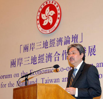 曾俊華在該論壇上致歡迎辭時(shí)說(shuō):“香港在內(nèi)地跟臺(tái)灣的經(jīng)貿(mào)交流上,擔(dān)當(dāng)重要的角色。香港是往來(lái)內(nèi)地和臺(tái)灣旅客的主要轉(zhuǎn)接地點(diǎn),也是兩地貨物貿(mào)易的主要轉(zhuǎn)口港。兩岸的經(jīng)貿(mào)關(guān)系過(guò)去幾年逐漸改善,經(jīng)過(guò)香港轉(zhuǎn)口的兩岸貿(mào)易在2002到2007年間仍然以年均15%的速度增長(zhǎng),占香港整體對(duì)外貿(mào)易的比例也從2002年的5.6%,上升到2007年的6.5%。”