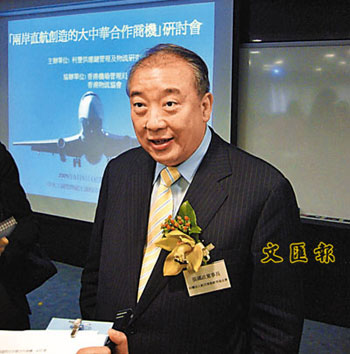 張國政指,目前每星期只有逾百班兩岸直航機,對香港的影響不大,但如果航班陸續增加及可以實行客倉帶貨,則會對香港的航運就造成一定影響。