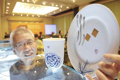 昨日展出的設(shè)計(jì)品,涵蓋時(shí)裝、珠寶、鐘表、瓷器、音響等,將于今晚舉行的設(shè)計(jì)營(yíng)商周周年晚會(huì)拍賣,得款將用作支持機(jī)構(gòu)推廣設(shè)計(jì)活動(dòng)。平面設(shè)計(jì)師靳埭強(qiáng)與Royal Copenhagen(哥本哈根皇家瓷器)合作,制作10人用的中式青花瓷餐具,名為《華宴》。靳埭強(qiáng)說(shuō),設(shè)計(jì)花了半年時(shí)間制作,用上紫荊花及牡丹花兩種花,代表香港回歸中國(guó)。